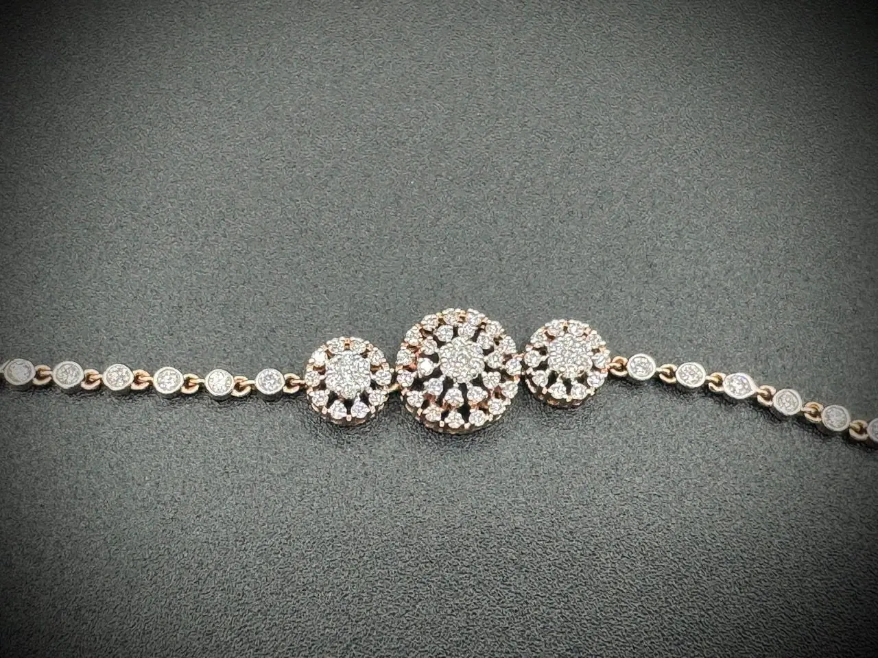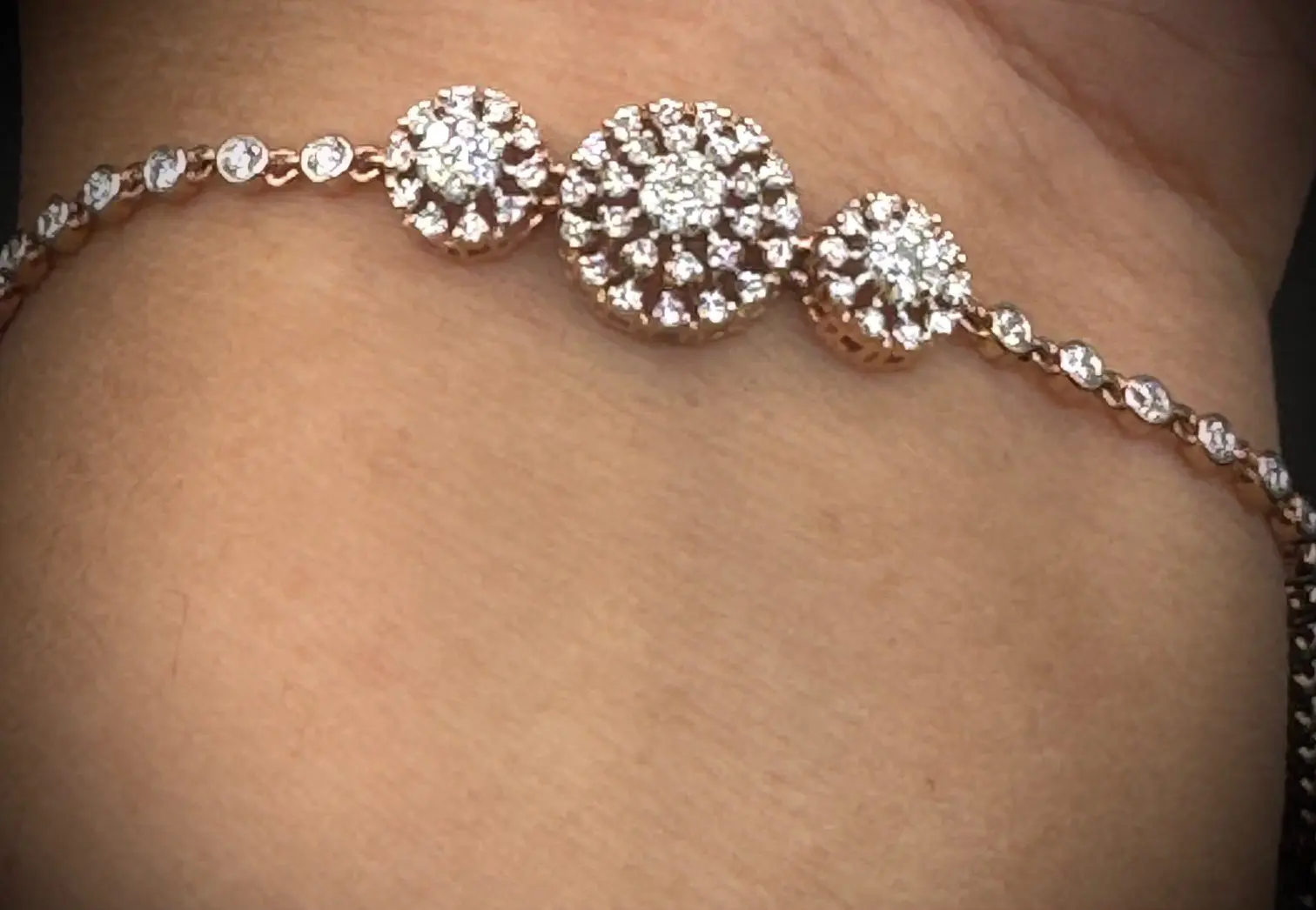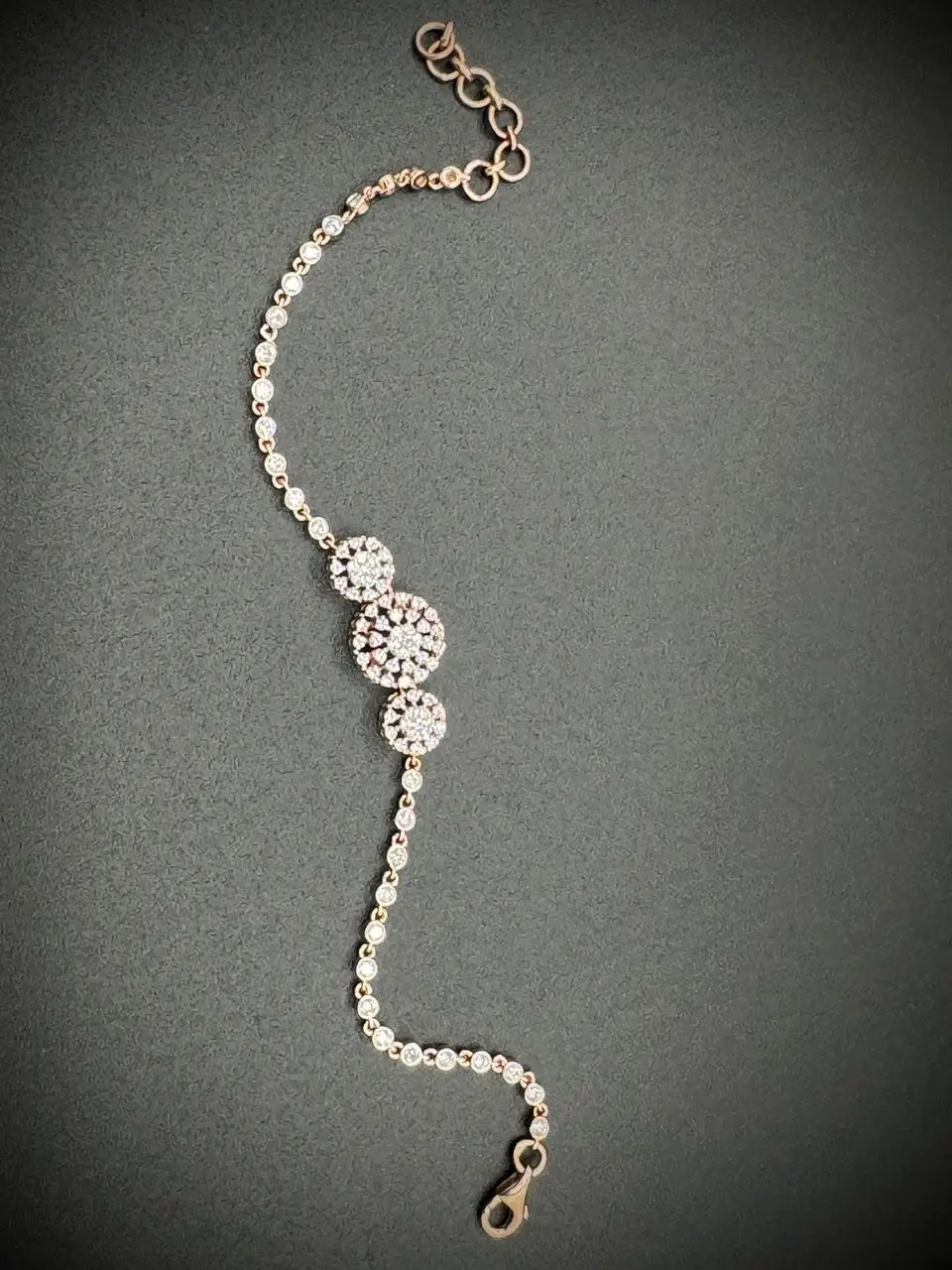 Round brilliant lab-grown diamond bracelet in 14K rose gold.