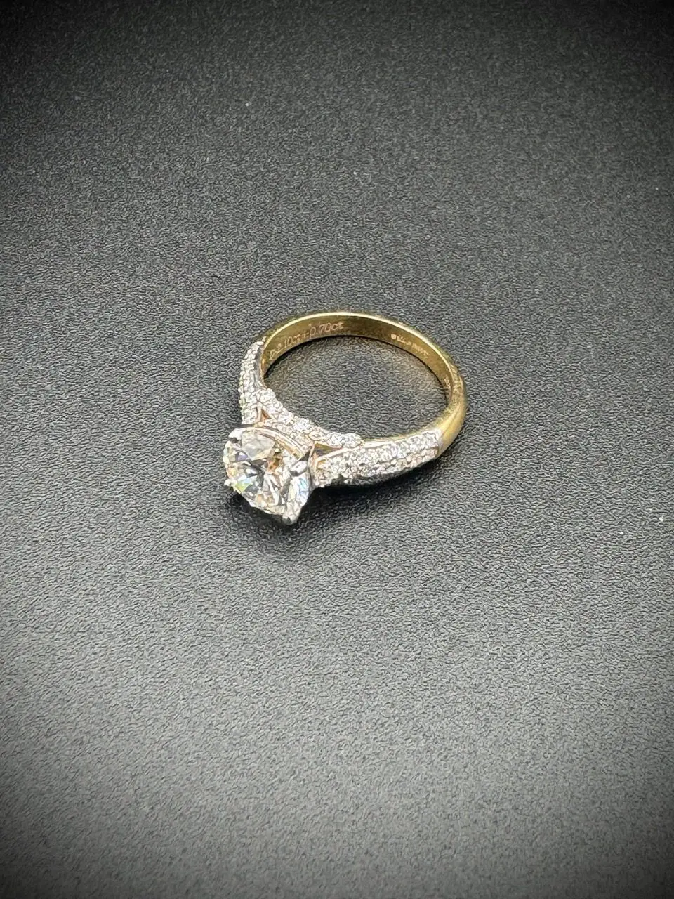 Metal/Stamped: Gold/14k Centre Stone: 1 Estimated Diamond Weight: 2.10 carat(s) Side Stone(s): 62 Estimated Diamond Weight: 0.70 carat(s) Color: F – G Clarity: VS Lab-Grown Diamonds